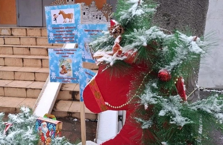 Новогоднее настроение уже витает в воздухе! Скоро мы соберемся рядом с любимыми, чтобы встретить новый год, полной надежд и мечтаний! Пора украшать дом гирляндами, готовить любимые блюда и, конечно, выбирать подарки для близких. Не забывайте о волшебстве этих моментов – о том, как согревает сердце теплое слово и улыбка друга. Делитесь радостью, создавайте незабываемые воспоминания и пусть каждый день будет наполнен светом и счастьем!А сотрудники нашего ДОУ тоже приготовили волшебство для всех, украсив один из вхдодв в детский сад яркими фигурками коней, разноцветными гирляндами и новогодними санями, спешащими к ребятам на их любимый праздник! Эта композиция принимает участие в муниципальном конкурсе "Новогоднее настроение"! |