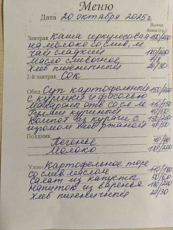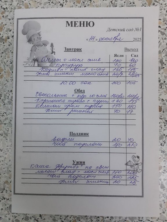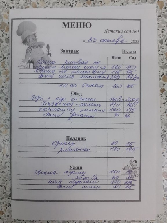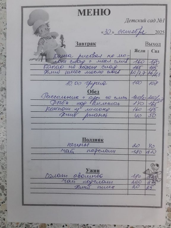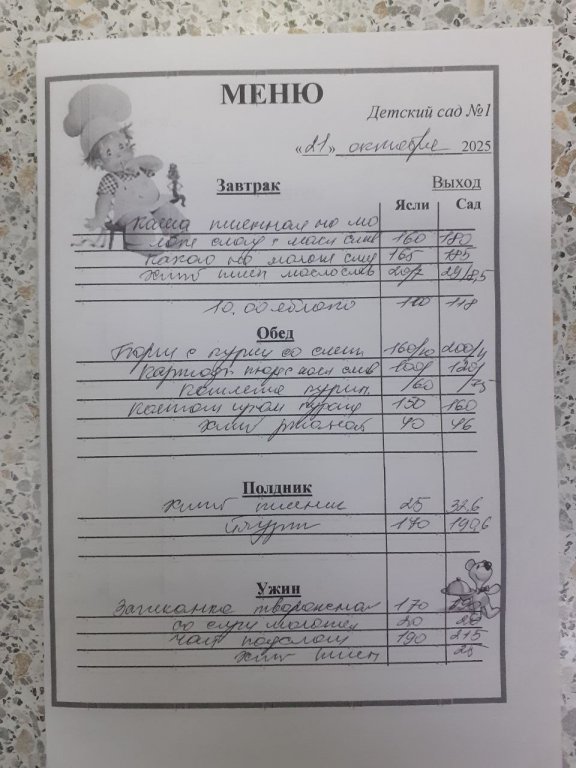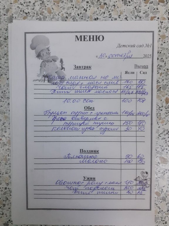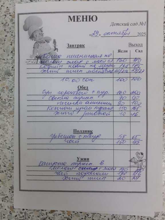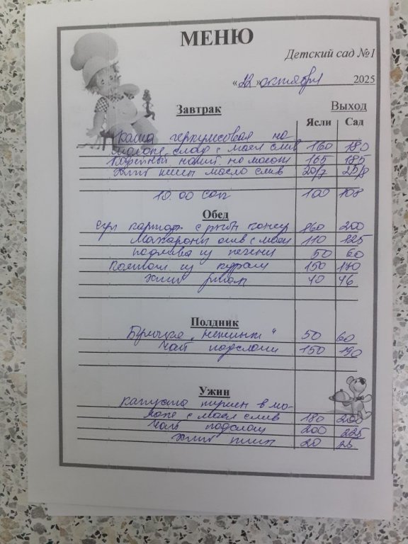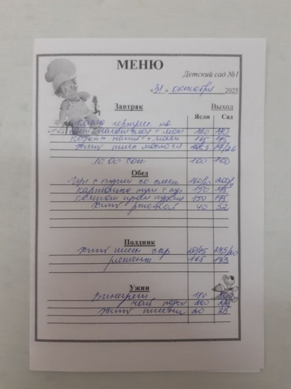 Организация горячего питания в МБДОУ "Детский сад №1"