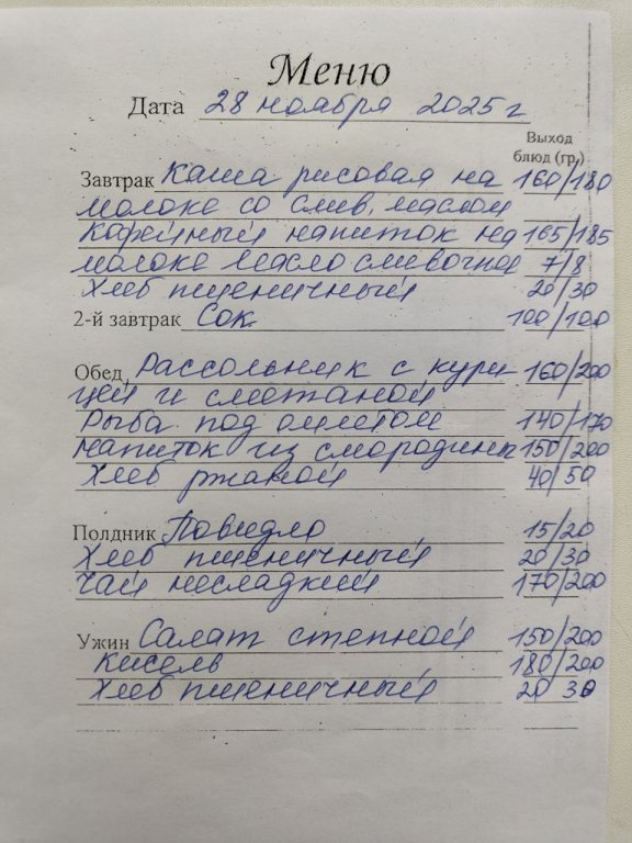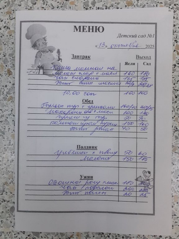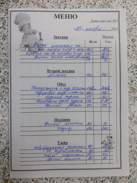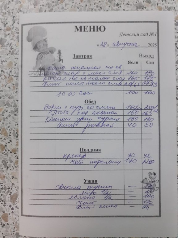 Организация горячего питания в МБДОУ "Детский сад №1"